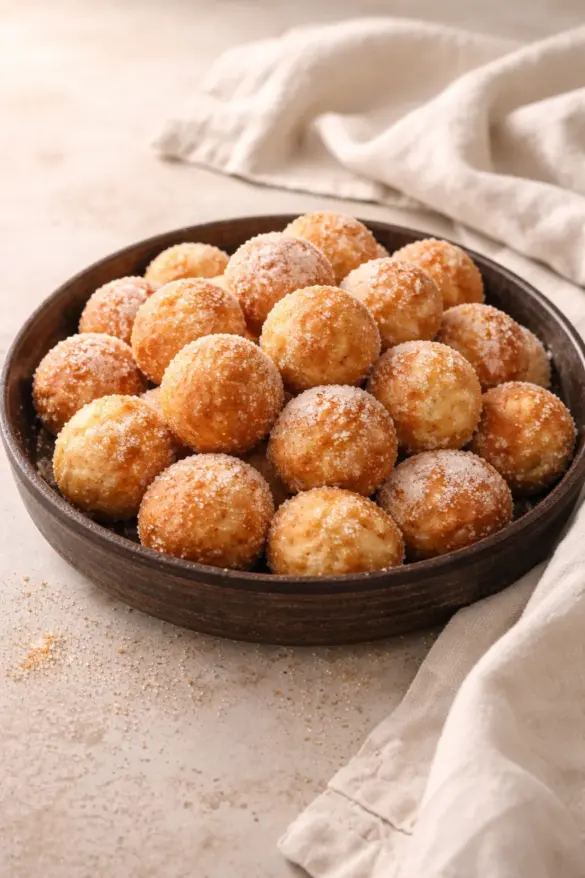 Bake: Place on a parchment-lined sheet and bake at 375 F for 12 to 14 minutes until lightly golden. - Finish (optional): Roll warm donut holes in cinnamon sugar, dust with powdered sugar, or drizzle a simple glaze. Totally optional and super good.