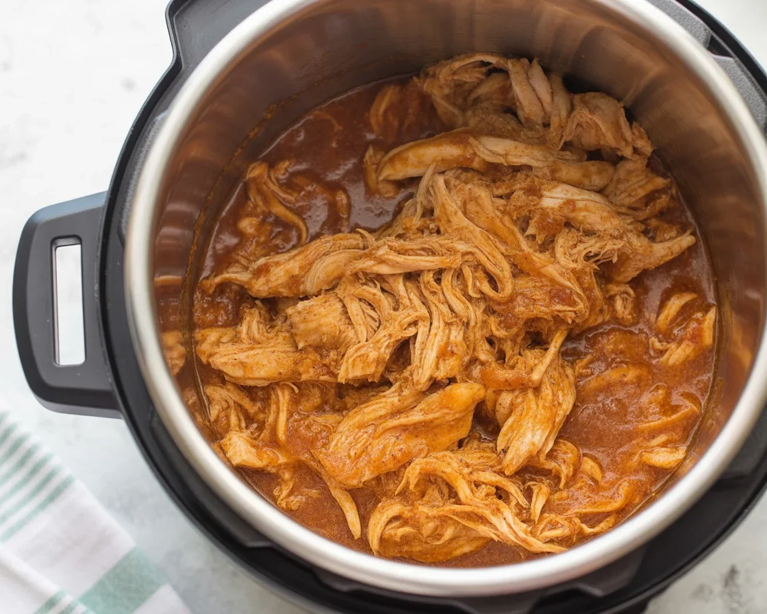 Letting the chicken sit in the hot sauce after shredding? This is the trick for soaking up all that saucy goodness.