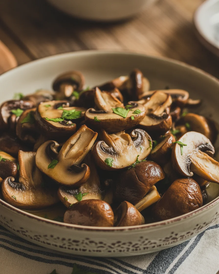 Garlic Parm: Toss the cooked mushrooms with a tablespoon of butter, extra garlic, and a small handful of grated Parmesan. Finish with parsley.