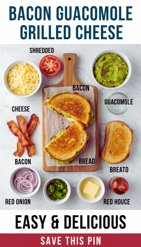If you are craving something crispy, cheesy, and just a little bold, make this tonight and do not overthink it. Once you get the heat right and layer the cheese like I mentioned, Bacon Guacamole Grilled Cheese turns out consistently amazing. If you want to see another fun version for inspiration, check out this Bacon Guacamole Grilled Cheese Sandwich post, or this Bacon Guacamole Grilled Cheese Sandwich Recipe – SideChef for another take. Either way, make it your own, grab some napkins, and enjoy every messy bite.