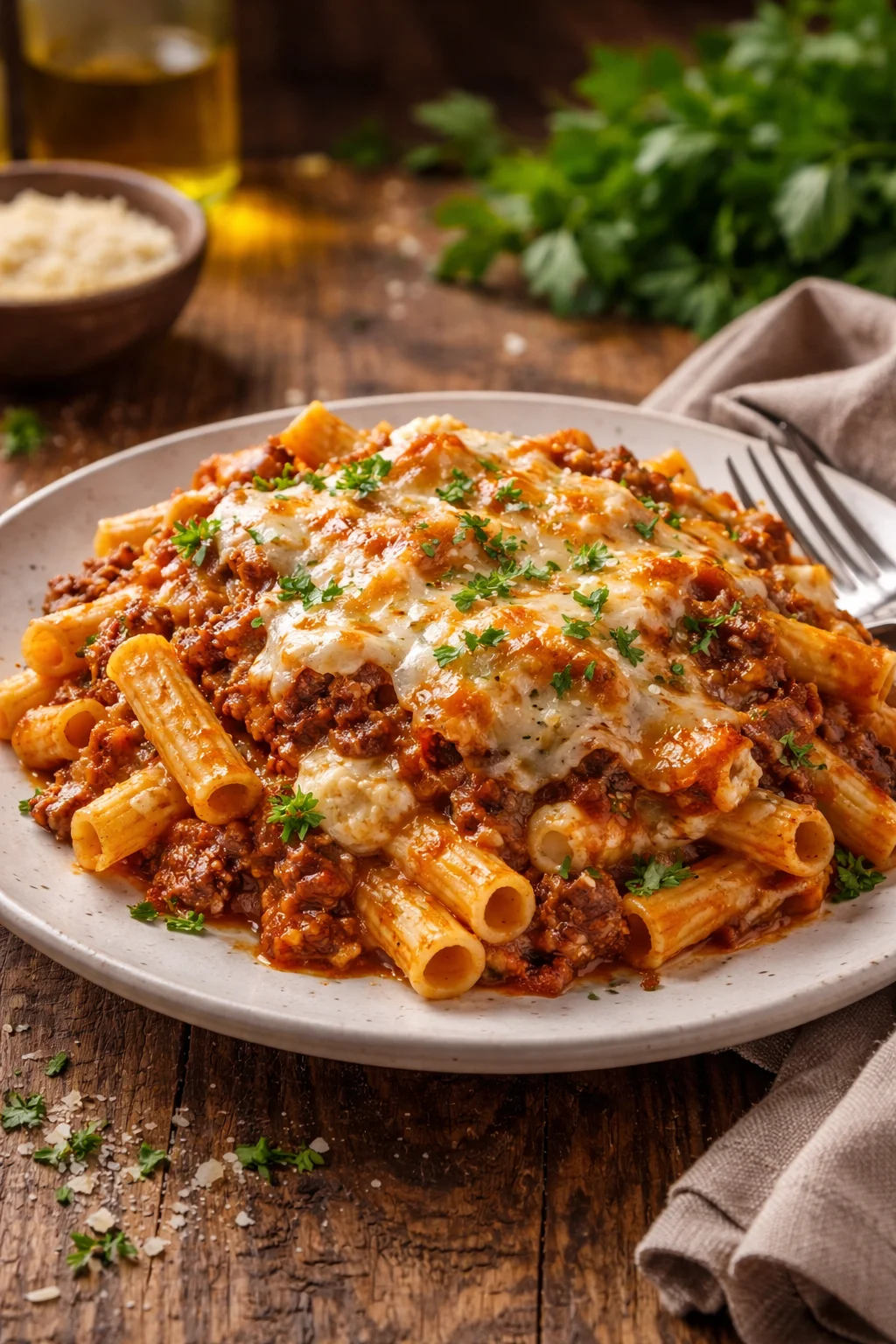 For me, baked ziti checks all the boxes. It tastes like something you would order at a classic Italian spot, but it is easy enough for a normal weeknight. The pasta holds onto sauce really well, the beef makes it hearty, and that ricotta layer gives it a creamy comfort that feels a little special.