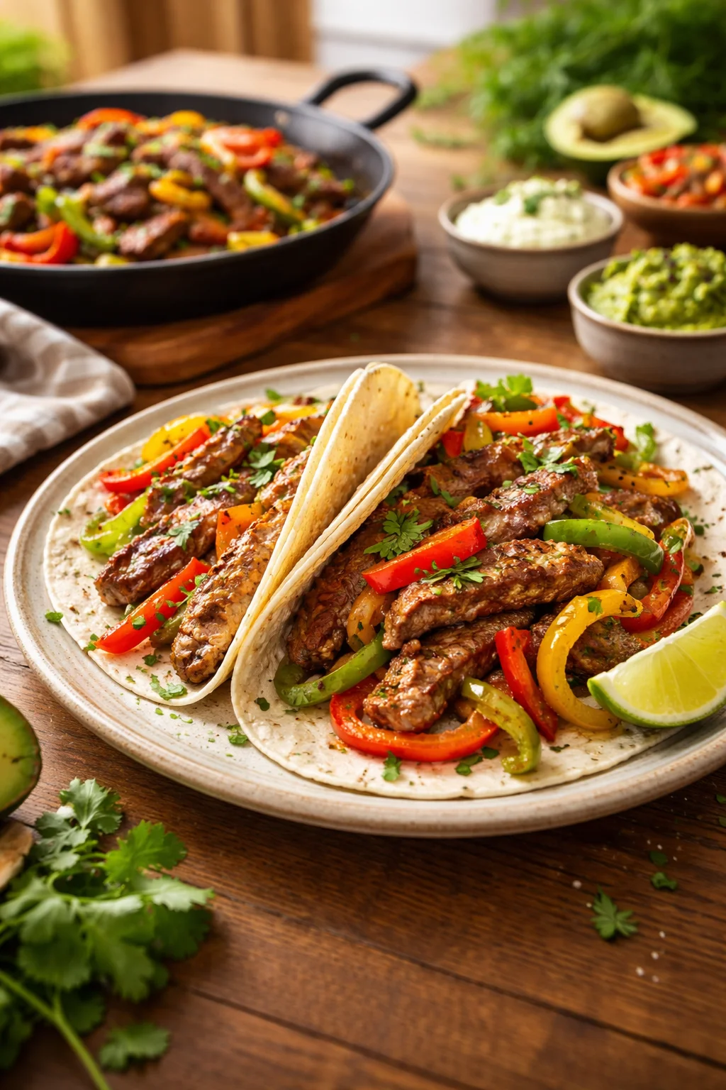 So here is my not so fancy secret: a tiny pinch of brown sugar in the seasoning mix. I know, it sounds weird if you have never tried it. But it helps the steak and veggies caramelize faster and gives that slightly smoky, restaurant style edge. It does not make the fajitas sweet. It just rounds everything out.