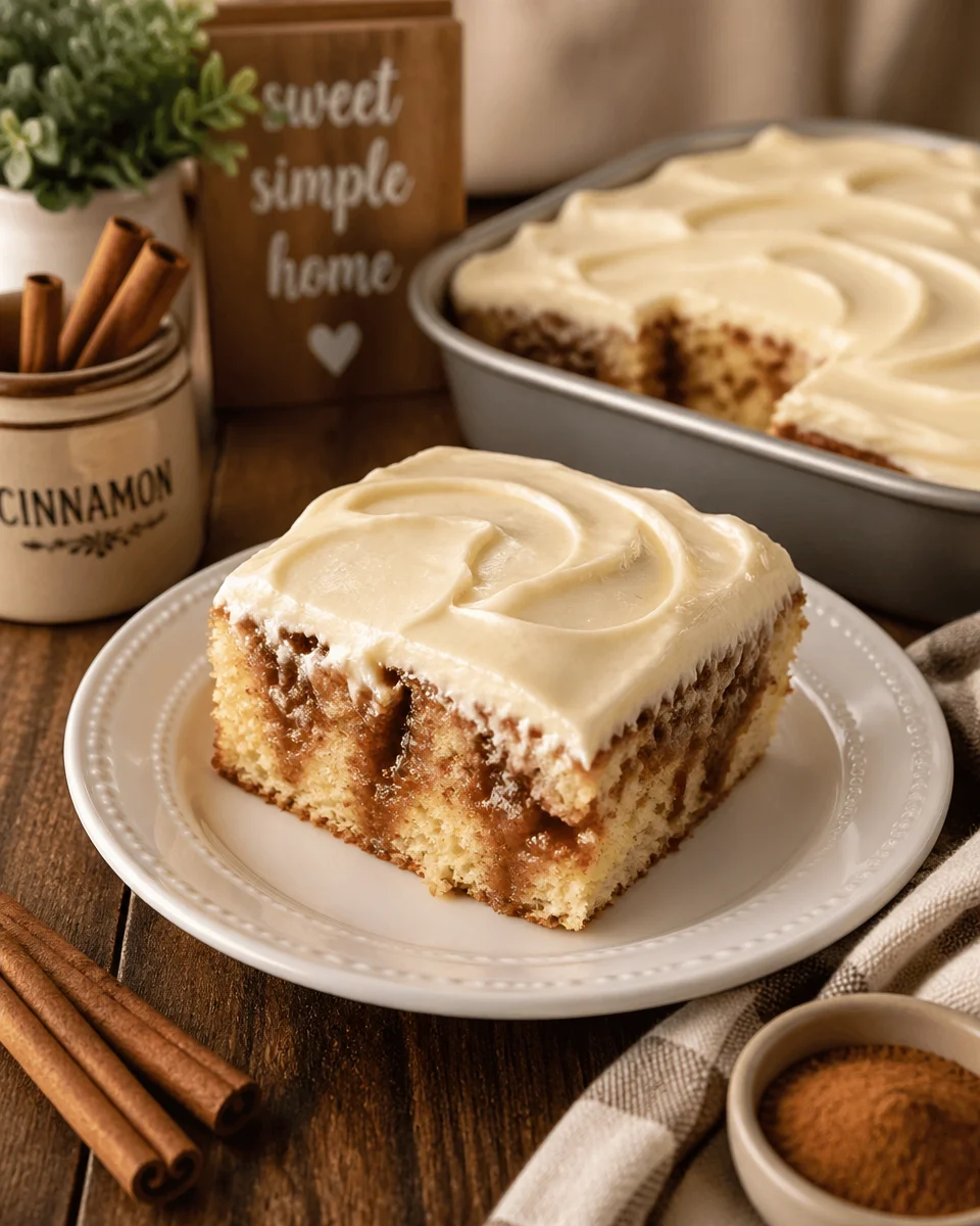 Keyword cinnamon roll, Cozy Sweet, easy dessert, Party Recipe, Poke Cake