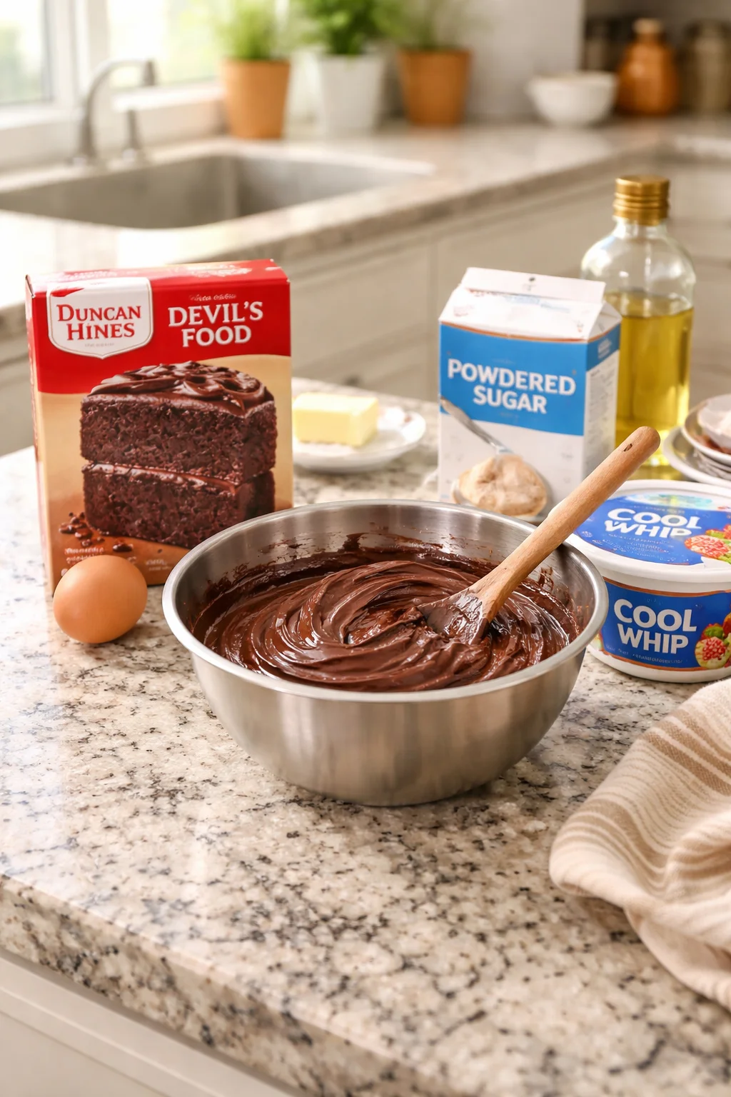 That is it for the core. No butter to soften, no flour to measure, no mixer required. The dough will be sticky, so do not panic. That is normal for Cool Whip cookies. I keep a spoon and a small cookie scoop nearby and just accept that this is a “sticky hands” recipe unless you use the scoop method.