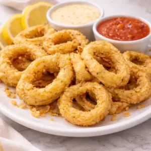 Crispy Fried Calamari is one of those snacks I crave when I want something salty, crunchy, and a little bit fancy without actually doing anything fancy. You know the feeling: you order it at a restaurant, it arrives hot and golden, and suddenly everyone at the table is fighting over the last ring. I got tired of paying restaurant prices for a small basket, so I started making it at home. The good news is it is way easier than it looks, as long as you treat the squid right and keep your oil hot. Let me walk you through how I make it so it comes out light, crisp, and not chewy.