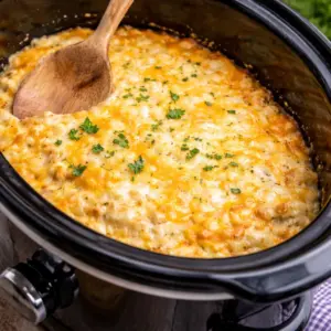 I spray the crockpot insert well, then stir everything together in a big bowl until the potatoes are fully coated. Pour it into the crockpot, smooth it out, and cook on low until hot and bubbly and the edges look slightly golden. I usually plan for about 3 to 4 hours on low, but crockpots vary, so start checking a little early if yours runs hot.