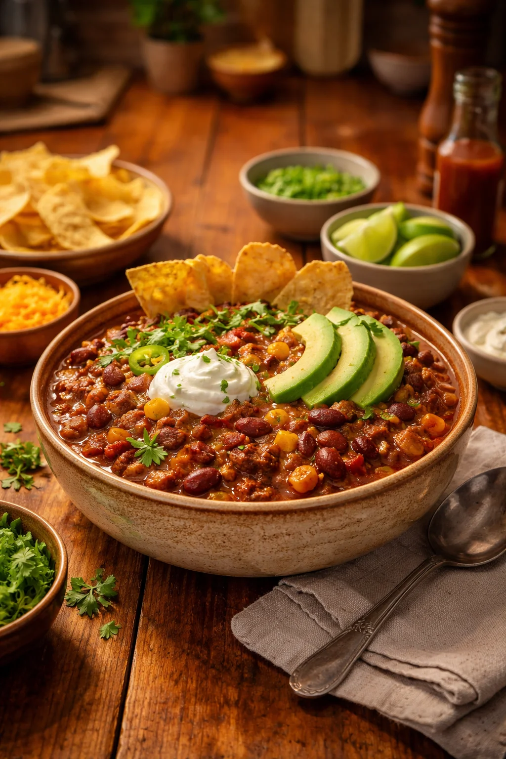 Ok, now for the part where chili turns into a whole situation with toppings. This Deer Chili Recipe is great straight from the pot, but the toppings are what make everyone feel like they got exactly what they wanted.