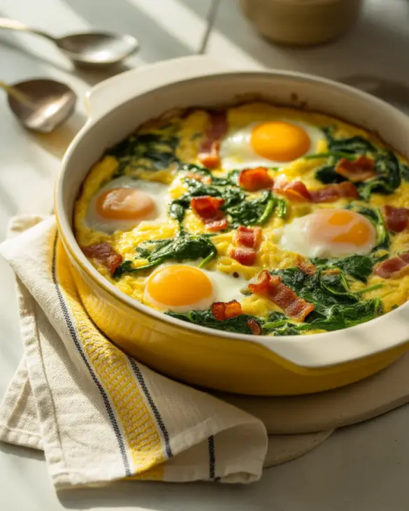 Dairy Free Egg Casserole with Bacon, Potato, and Spinach
