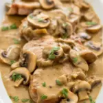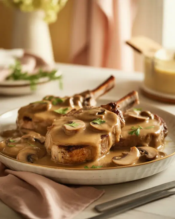I love these chops over mashed potatoes or egg noodles with a spoonful of extra gravy. The comfort factor is unreal. If you want a cozy side that cooks fast too, try a creamy rice or a simple green salad. When I’m in a mushroom mood, I’ll pair it with a fresh veggie like green beans or roasted carrots for crunch against the rich sauce. This is also a great base recipe for meal prep since the gravy reheats like a dream.