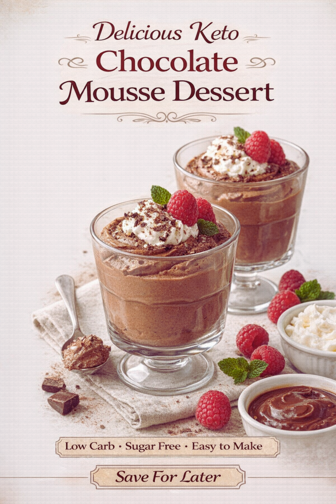 And of course, the easiest reminder so you don’t forget: this is the Delicious Keto Chocolate Mousse Dessert – Just 3 Easy Steps! Perfect for last-minute cravings or when guests drop by.