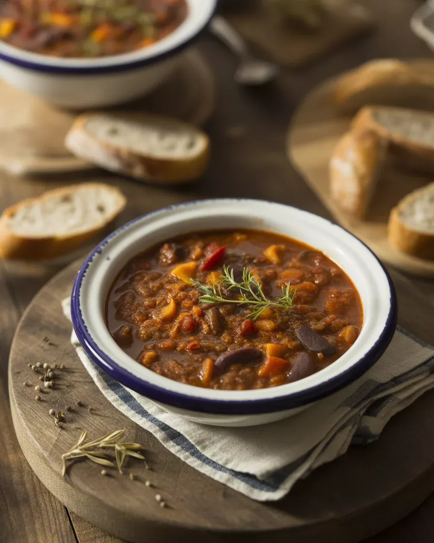 For the slow cooker, brown the meat and veggies in a skillet first for the best flavor. Transfer everything to the slow cooker, add tomatoes, broth, spices, and bay leaf, and cook on Low for 6 to 8 hours or High for 3 to 4 hours. Finish with vinegar and adjust salt. Either way, you get that deep, hearty flavor without hovering by the stove.