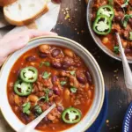 If you’re low on tomatoes or want a slightly thinner chili, add extra broth right before serving and simmer or cook on Low for another 15 minutes to let flavors mingle. This approach works great for a lighter bowl at lunch.