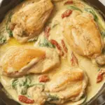 Leftovers are a blessing, especially when you replicate that silky sauce the next day. Store your Tuscan chicken in an airtight container in the fridge for up to 3 days. The sauce will thicken as it rests because of the Parmesan. That’s normal.