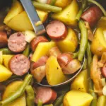 Here’s the quick rundown of how I make my Deliciously Easy Crock Pot Swamp Potatoes. I use about 2 pounds of russet or gold potatoes, peeled and sliced about 1/4 inch thick. Add one yellow onion, thinly sliced, and 12 to 16 ounces of smoked sausage or andouille, cut into coins. Toss everything with a little butter or olive oil, garlic powder, paprika, black pepper, and a pinch of salt. Splash in about 1/2 cup of chicken broth so the potatoes have steam to soften and a base for a light sauce. Cook on low 5 to 6 hours, or high 3 to 3 1/2 hours, until a fork slides into the potatoes easily.
