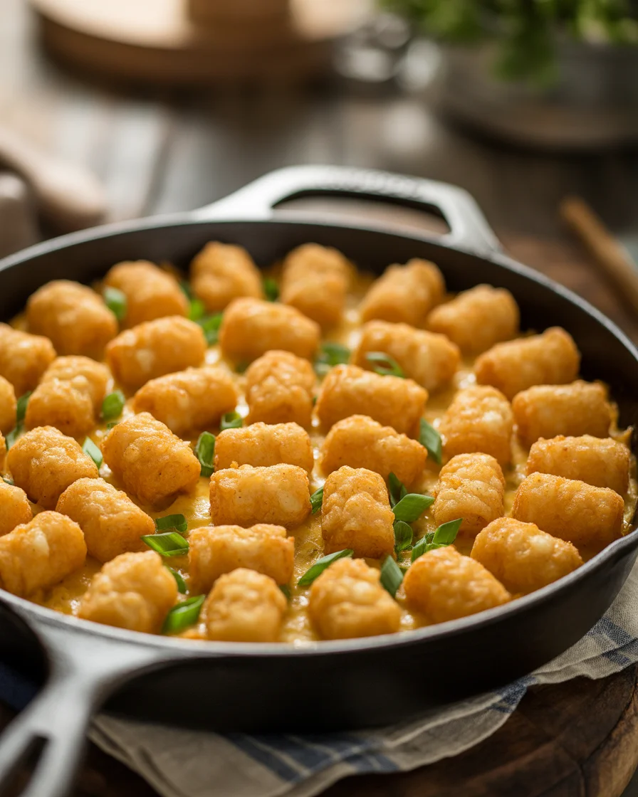 Freezer option: Assemble, wrap well in plastic and foil, and freeze for up to 2 months. Bake from frozen at 350°F for about 60 to 75 minutes, loosely covering with foil if the tots start to brown too fast. Or thaw in the fridge overnight and bake as usual at 375°F.
