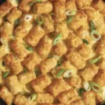 Bake for 40 to 45 minutes, until the eggs are set in the center and the tater tots are crispy and browned. If you want extra crunch, flip the oven to broil for 2 to 3 minutes at the end. Let it rest for 10 minutes so the slices hold together. Top with green onions and serve warm.