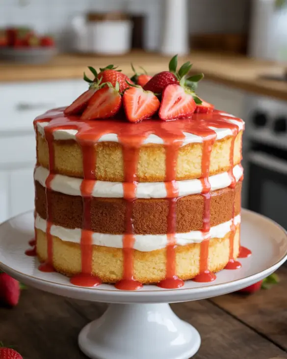 Some days, if I’m feeling extra, I’ll chop a few strawberries and layer them right in the batter before baking. Gives you these sweet-tart bursts in the cake itself. Chef’s kiss, my friend.
