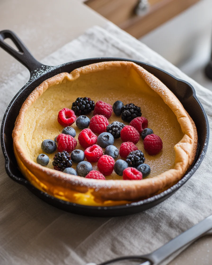 Okay, let me gush for a second. Making a Dutch Baby Pancake feels fancy, but it’s so easy. Everything happens in one pan. Cleanup is kind of dreamy, to be real. While you’re pouring your coffee (or, like me, running around trying to find clean mugs) the pancake is just hanging out in the oven, doing its thing. You can serve it to guests and look like a genius, or make a Tuesday morning weirdly special for yourself. Plus, toppings? Oof, don’t get me started. You’ll want to experiment with every fruit and drizzle in your kitchen. I’ve done peanut butter and bananas, lemon with powdered sugar, even leftover jam—I’ve gotten pretty wild, honestly. My verdict? Dutch Baby Pancake is the ultimate crowd-pleaser and week-saver.