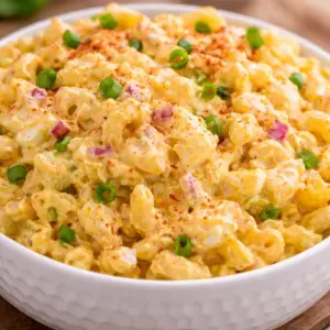 A creamy and tangy pasta salad that captures the flavors of deviled eggs, perfect for potlucks and gatherings.