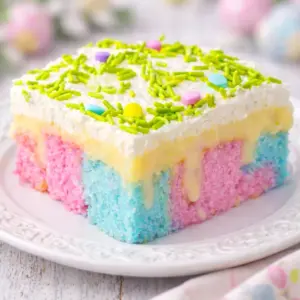 Easter Poke Cake is the dessert I make when I want something cute and festive, but I do not want to babysit a complicated recipe. If you have ever volunteered to bring dessert for Easter and then realized you also have a million other things to do, this one is for you. It is colorful, soft, and super forgiving even if you are not a confident baker. I love it because it looks like you spent way more time than you actually did. And the best part is that kids get genuinely excited about it, which is honestly half the win.