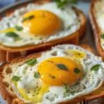 Worried the egg will slide off the bread? Two tricks help. First, press a shallow well in the center of the bread with the back of a spoon, then add a layer of shredded cheese to make a little nest. Second, crack the egg into a small bowl first and gently pour it into the cheese nest. If the white tries to run, guide it back with a fork. You can also toast the bread for 1 minute before adding the egg to give it a head start.