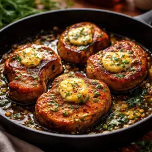 Mushroom Pan Sauce: Remove the chops to rest, toss sliced mushrooms into the pan with a bit more butter, cook until golden, then stir in chicken broth and a swirl of cream. Spoon over the chops.