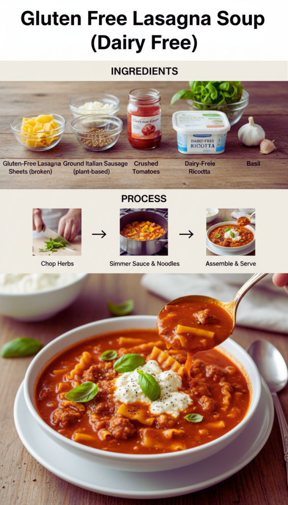Gluten Free Lasagna Soup (Dairy Free) has saved so many weeknights at my house. You know those evenings when you want something cozy and satisfying, but you also want it to be simple and friendly to your stomach. That is exactly what this soup does. It has all the flavors of a classic lasagna, but way easier to pull off, and kinder to those of us avoiding gluten and dairy. The broth tastes rich, the noodles stay tender, and the whole bowl feels like a hug. If you love hearty, saucy meals without the fuss, you are in the right place.