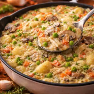 This Gnocchi Chicken Pot Pie offers the comfort of a classic pot pie without the hassle of crust, featuring soft gnocchi, hearty chicken, and a creamy sauce.