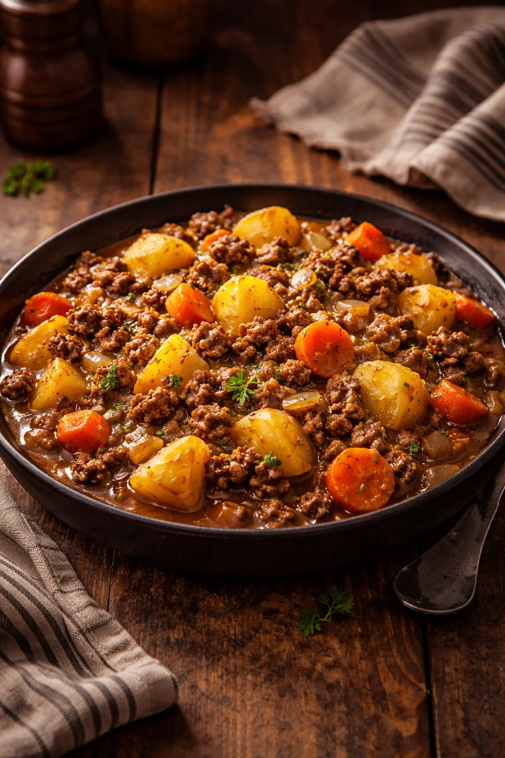 For the Hobo Casserole Ground Beef Recipe you really just need simple ingredients and a hot oven. If you want to add a deeper savory note, a splash of Worcestershire or soy sauce into the beef does wonders.