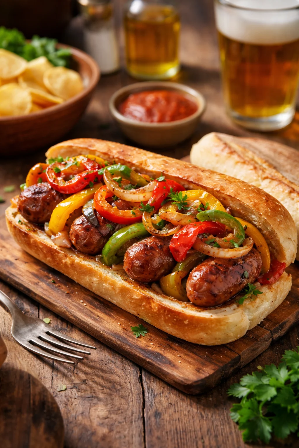 My basic prep is simple: I cut potatoes first, then peppers and onion, then I deal with the sausage. If the sausages are raw links, I usually slice them into thick coins. If they are already cooked, I still slice them, but I add them a little later so they do not dry out.