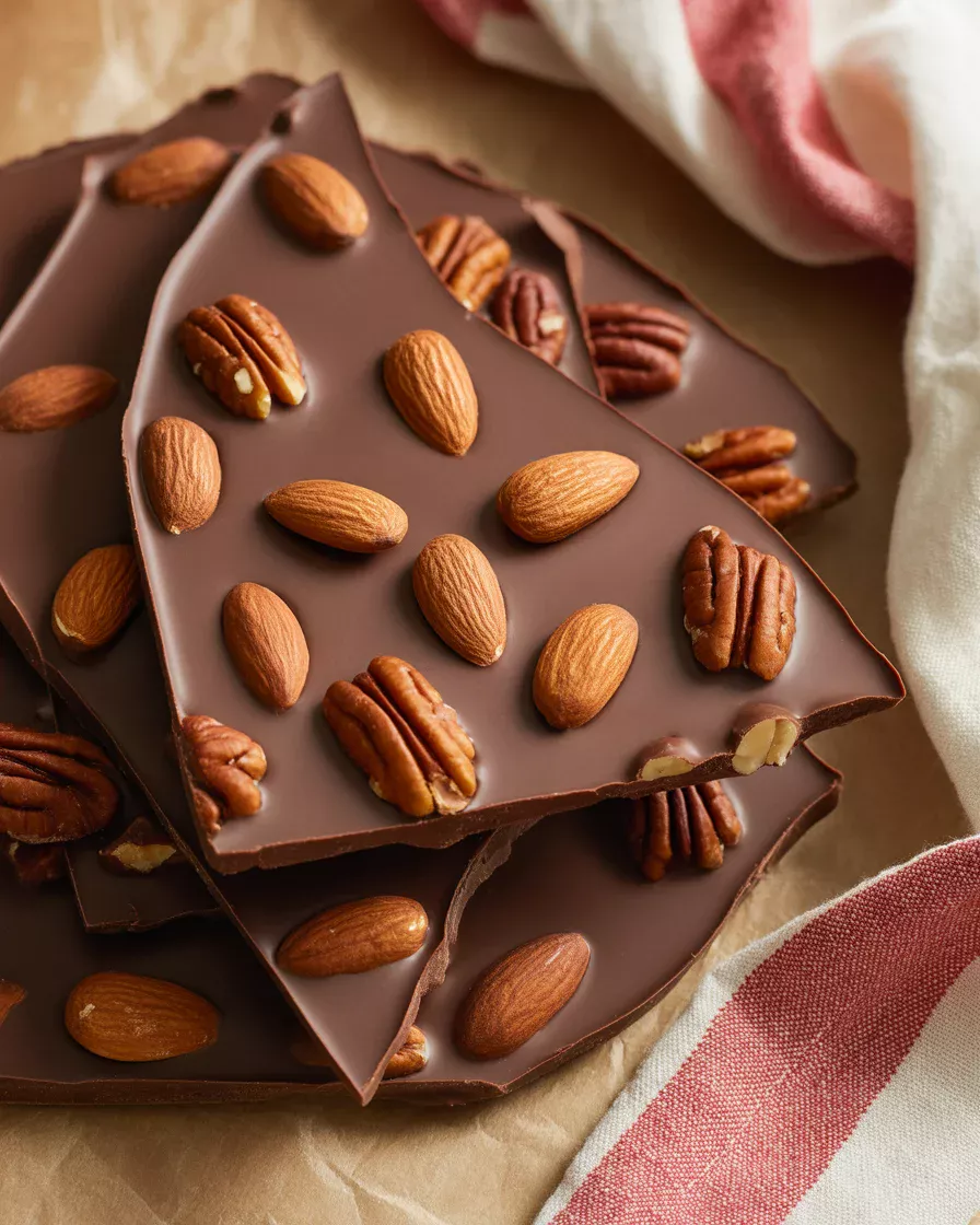 Hazelnut crunch bark: swap almonds for toasted hazelnuts and add a tiny splash of vanilla. Coconut almond bark: sprinkle unsweetened shredded coconut over the top before chilling. Spiced bark: stir in ground cinnamon and a few chili flakes for a warm, lingering kick. Coffee crunch: a teaspoon of espresso powder in the melted chocolate plus a few cacao nibs on top for texture. Winter orange bark: a pinch of orange zest with a few sea salt crystals is wildly good.