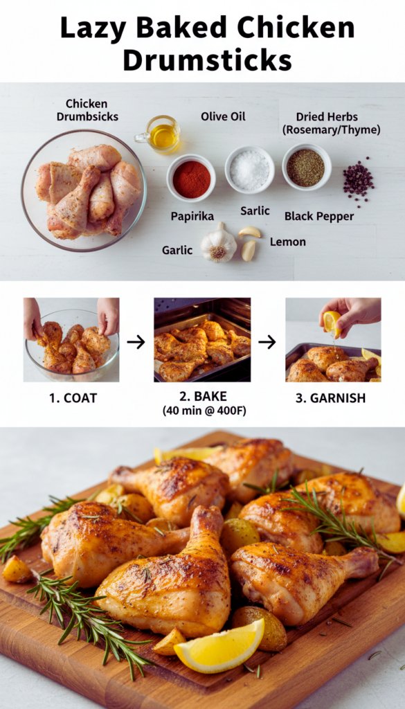 Lazy Baked Chicken Drumsticks are the answer when you want something warm, savory, and ridiculously low stress. Maybe your day’s been wild. Maybe you forgot to thaw anything fancy. Or maybe you just want a dinner that basically cooks itself while you kick off your shoes. This is my go-to for juicy chicken with crispy skin and bold flavor, and it only needs a few pantry items. Stick it in the oven, let the spices do their thing, and you’re eating well with almost no effort.
