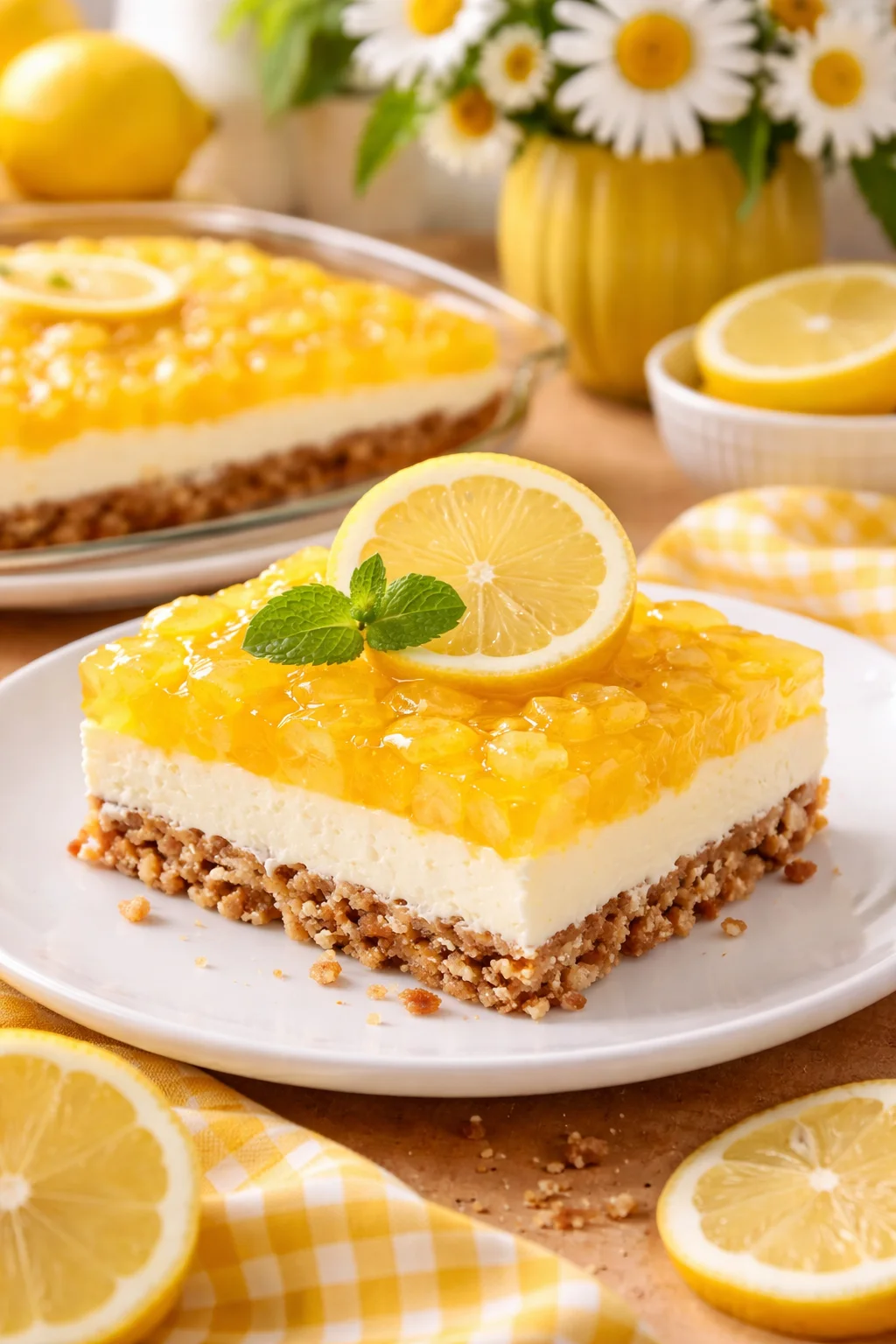 Chill the dessert long enough for the layers to set. For variations, consider adding lemon zest to the cream layer or topping with strawberry preserves before adding the lemon pudding layer. Serve it very cold for better flavor and clean slices.