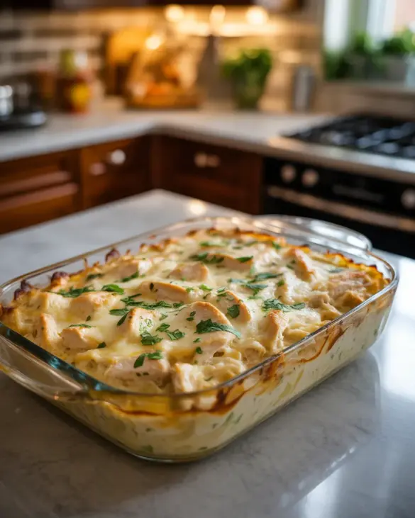Low Carb 4 Ingredient Chicken Alfredo Bake