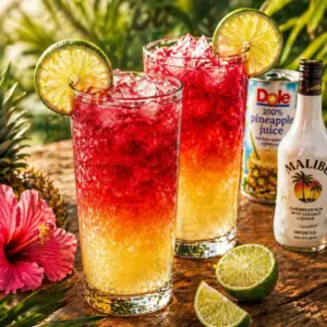 MALIBU BAY BREEZE is the kind of drink I reach for when I want something tropical but I do not want to think too hard. Maybe you have friends coming over and you need a quick cocktail that tastes like vacation. Or maybe it is just you on a random weeknight, trying to make the sofa feel a little more like a beach chair. Either way, this is one of those recipes that looks fancy in a glass but is honestly super simple. I have made it for backyard hangouts, brunch, and even last minute movie nights.