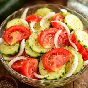 A refreshing and tangy salad made with cucumbers, tomatoes, and onions, perfect for hot days when you want a crisp and cool side dish.