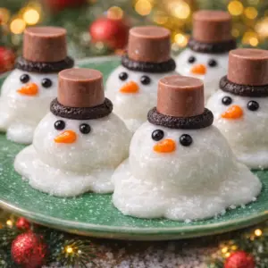 The “melted snowman” look is just a cute decorating trick. You are basically making a dipped Oreo ball, then creating a little puddle of white chocolate on top so it looks like the snowman is melting into it. It is silly in the best way.