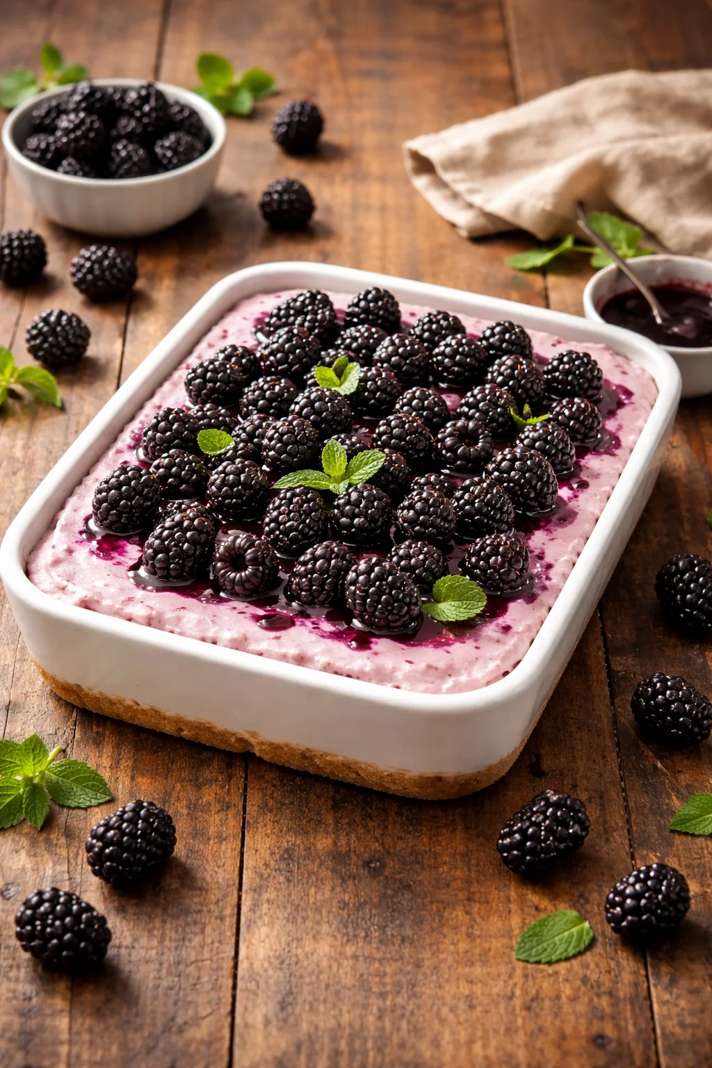 The best part is how this dessert hits all the right notes. You get a crunchy crust, a smooth and fluffy filling, and a blackberry topping that tastes sweet, tart, and fresh all at once. It also slices nicely after chilling, so it looks great on a plate even if you are not a perfect decorator.