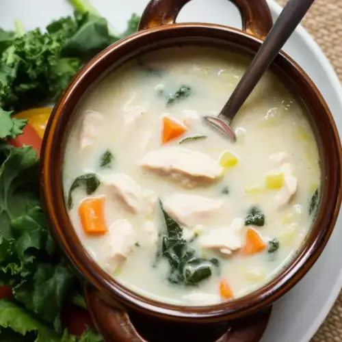 Fresh salad with lemon vinaigrette. The brightness makes the creamy broth pop. Roasted asparagus or green beans with olive oil and sea salt. For a heartier meal, add a baked potato or mashed cauliflower. If you are feeding a crowd with mixed diets, warm crusty bread on the side for those who want it, and keep the soup paleo for everyone else.
