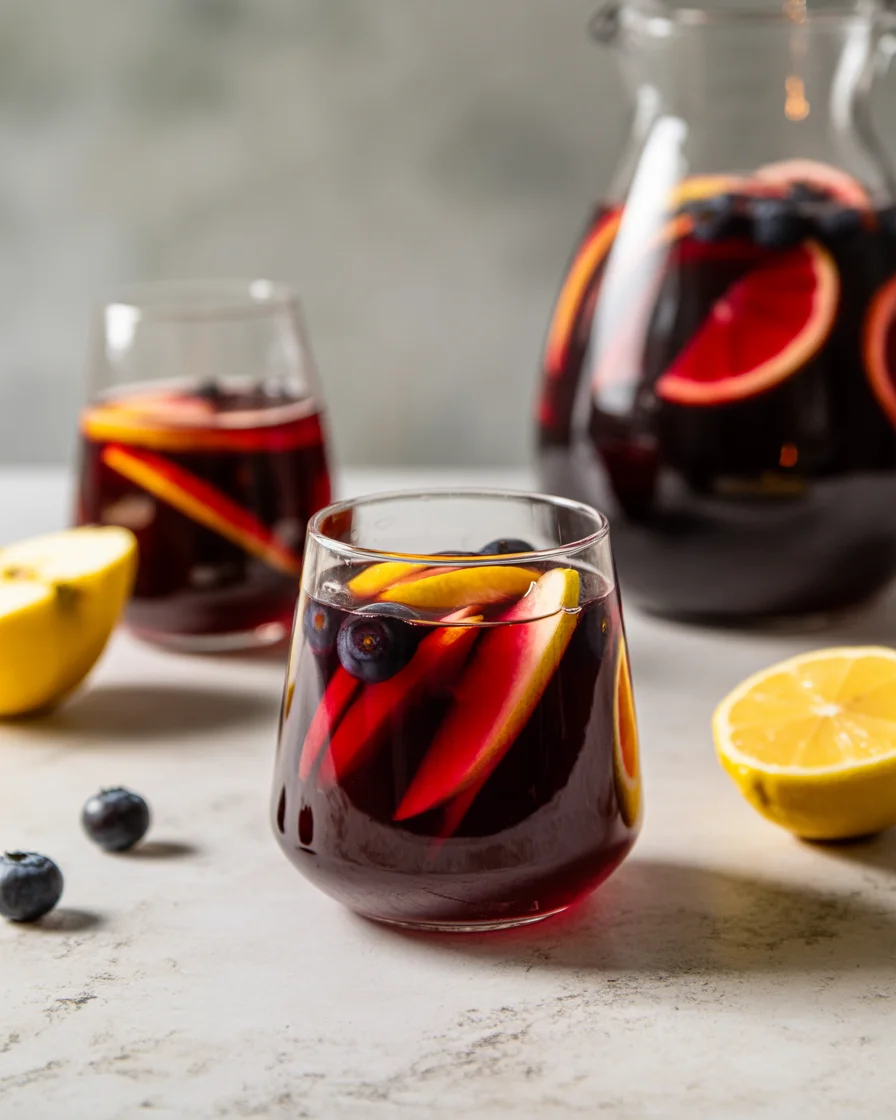 Sangria has endless possibilities, and you can totally riff on this recipe! Wanna switch things up? Use a dry white wine for a lighter version. That works if you want a crisp summertime vibe, more than a deep cozy flavor. For extra punch, toss in frozen cherries or pineapple.