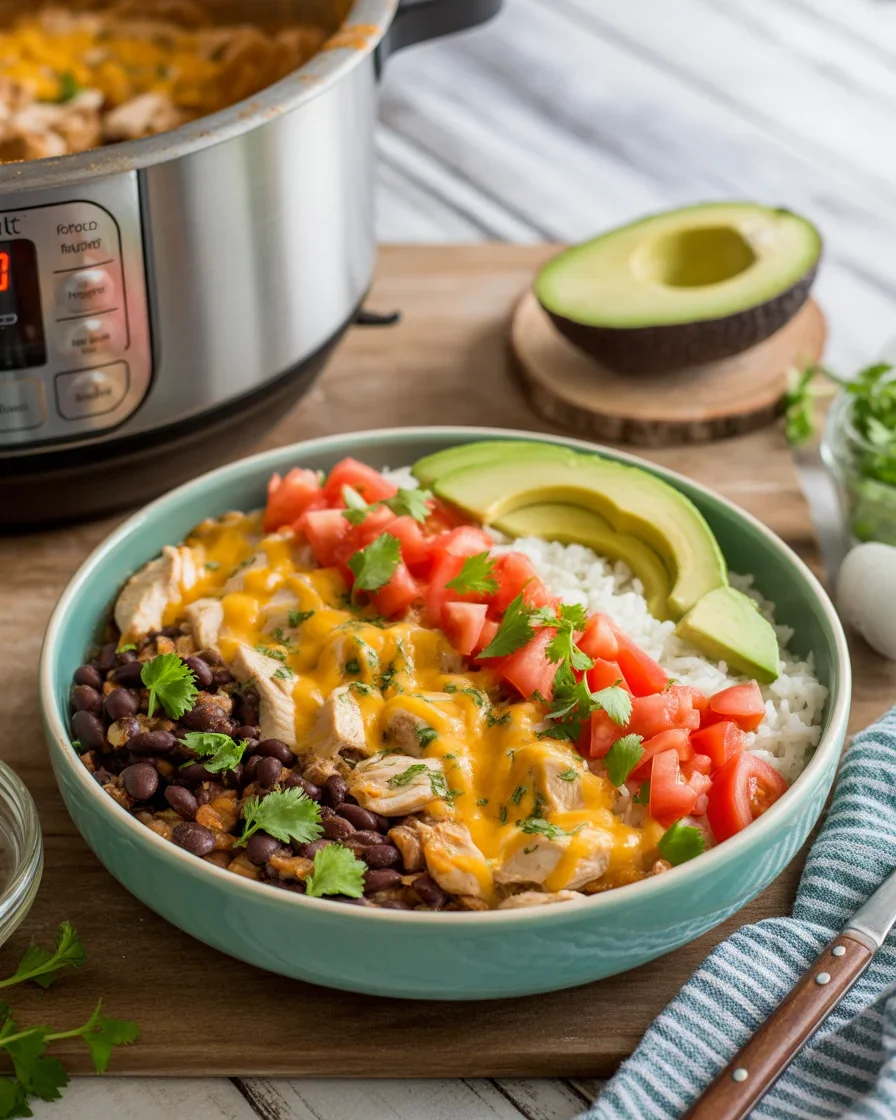 Instant Pot Weeknight Chicken and Rice Burrito Bowls are especially friendly for busy families, roommates, or anyone who needs a win after a long day. Make it once and you’ll have the rhythm down forever.