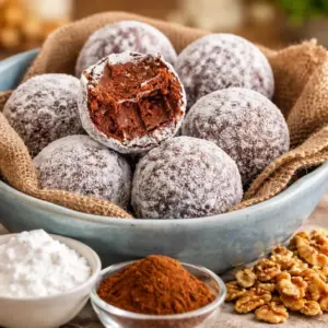 My personal tip: if you want a stronger rum flavor, do not just pour in a lot more rum right away or the texture can get messy. Instead, keep the rum amount reasonable and let the Rum Balls Recipes rest overnight. The flavor gets bolder by the next day.
