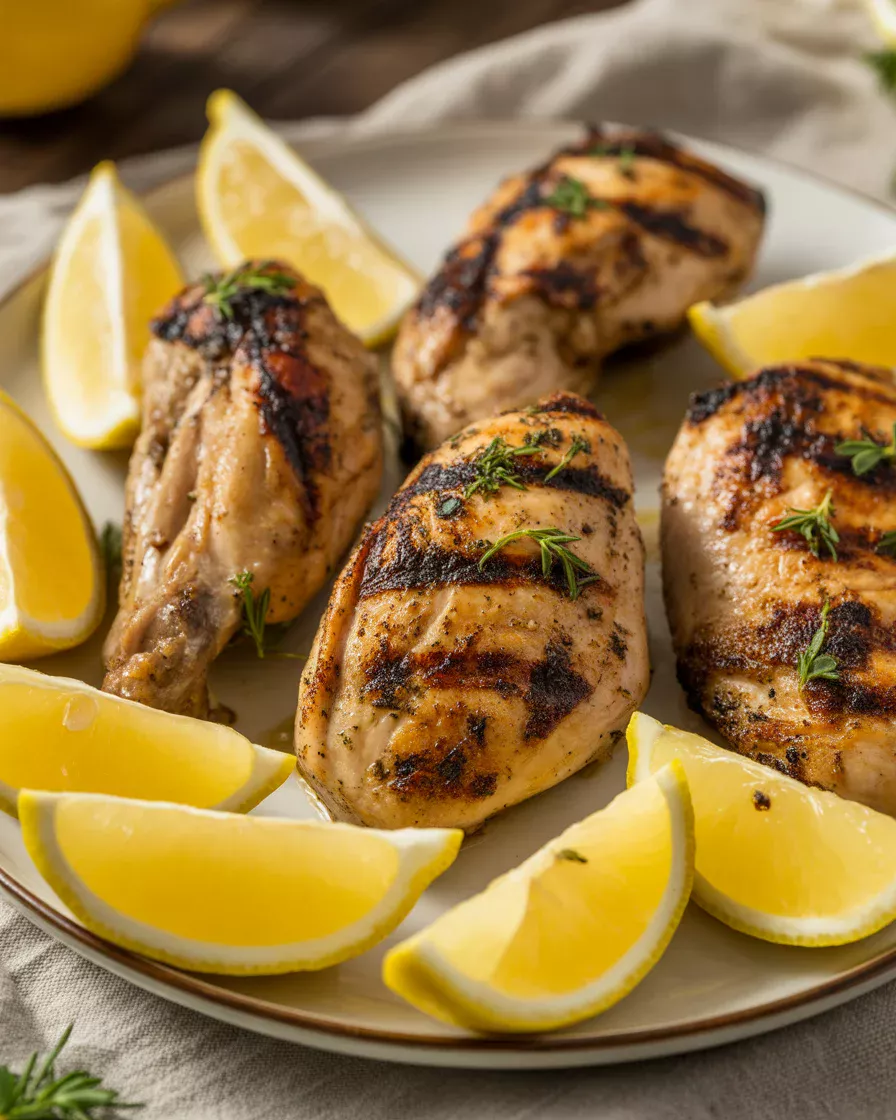 Flatten uneven chicken breasts by butterflying or gently pounding thicker spots so everything cooks evenly. Do not over marinate especially with yogurt. Four hours is plenty. For deeper lemon flavor add zest to the marinade but keep juice amounts moderate so the acidity does not overpower.