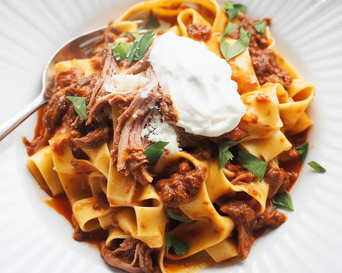 Once it’s done, shred the beef with two forks. Boil up your pappardelle, drain it, and plop everything together. Bonus points if you finish with some parm and a drizzle of olive oil. Seriously, this isn’t rocket science, but it sure feels fancy when you eat it.