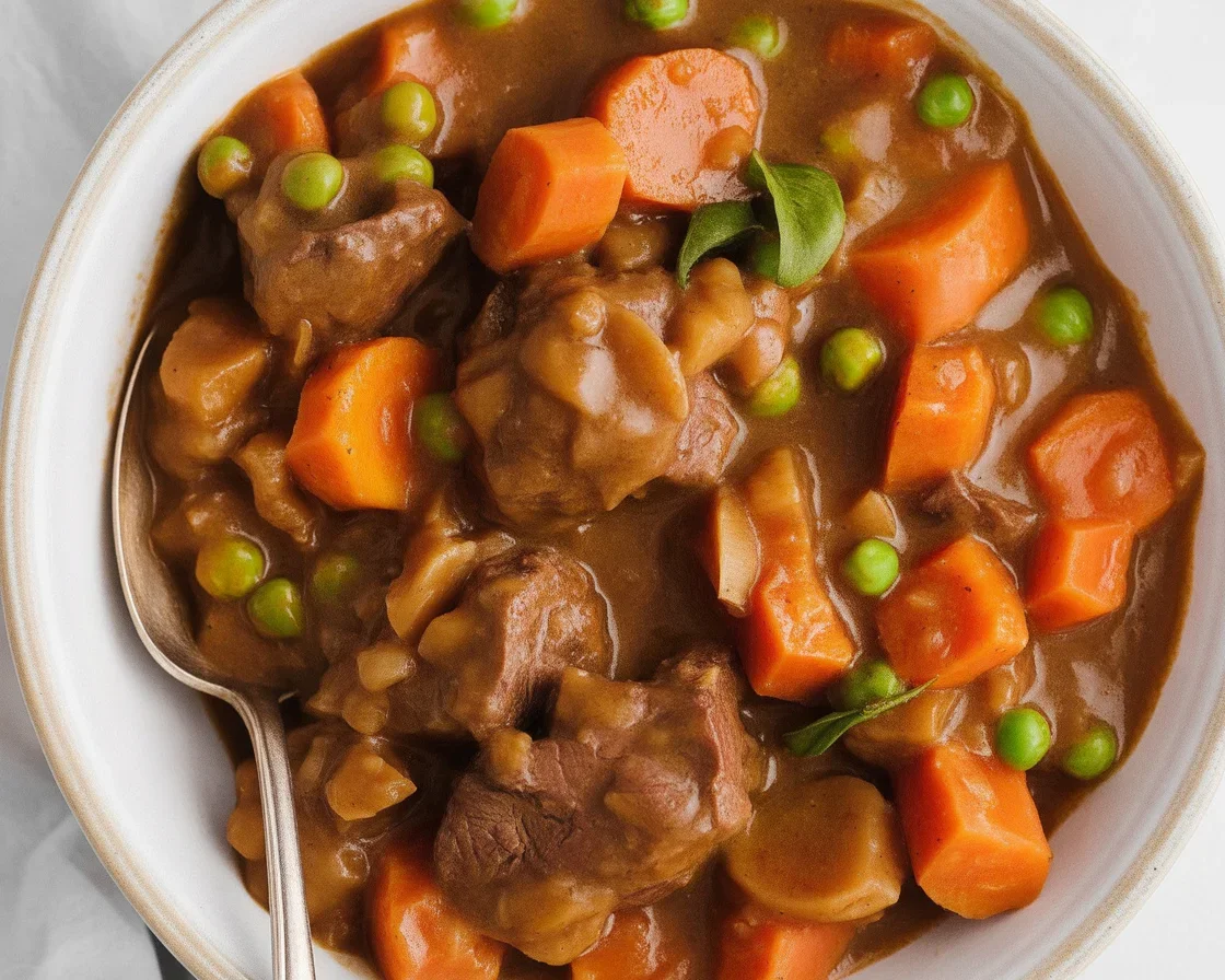 A hearty and comforting beef stew slow-cooked with red wine and vegetables, perfect for busy days.