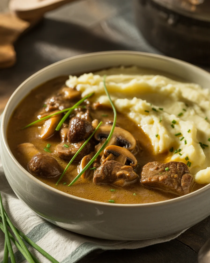 Sour cream thickens things, too. Don’t dump it in early, though, or it’ll break. Add at the end, stir gently, and let it melt into that beefy, mushroomy puddle. Noodles and potatoes both soak up excess too, so don’t go wild thickening or it gets gloopy.