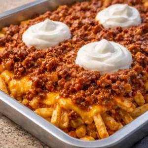 If you try this, keep it simple the first time and get a feel for your favorite sauce to fries ratio, then have fun with toppings. sloppy Joe Fries Casserole is one of those meals that disappears fast, and the leftovers are still totally worth fighting over. For more inspiration, you can check out Sloppy Fry Casserole – Homemade on a Weeknight for another home style take, or compare notes with Sloppy Joe Fries Recipe – Allrecipes if you like seeing the classic approach. Either way, do not overthink it, get the fries crisp first, and let the cheese do its thing. Now go make dinner fun tonight and tell me what twist you added.