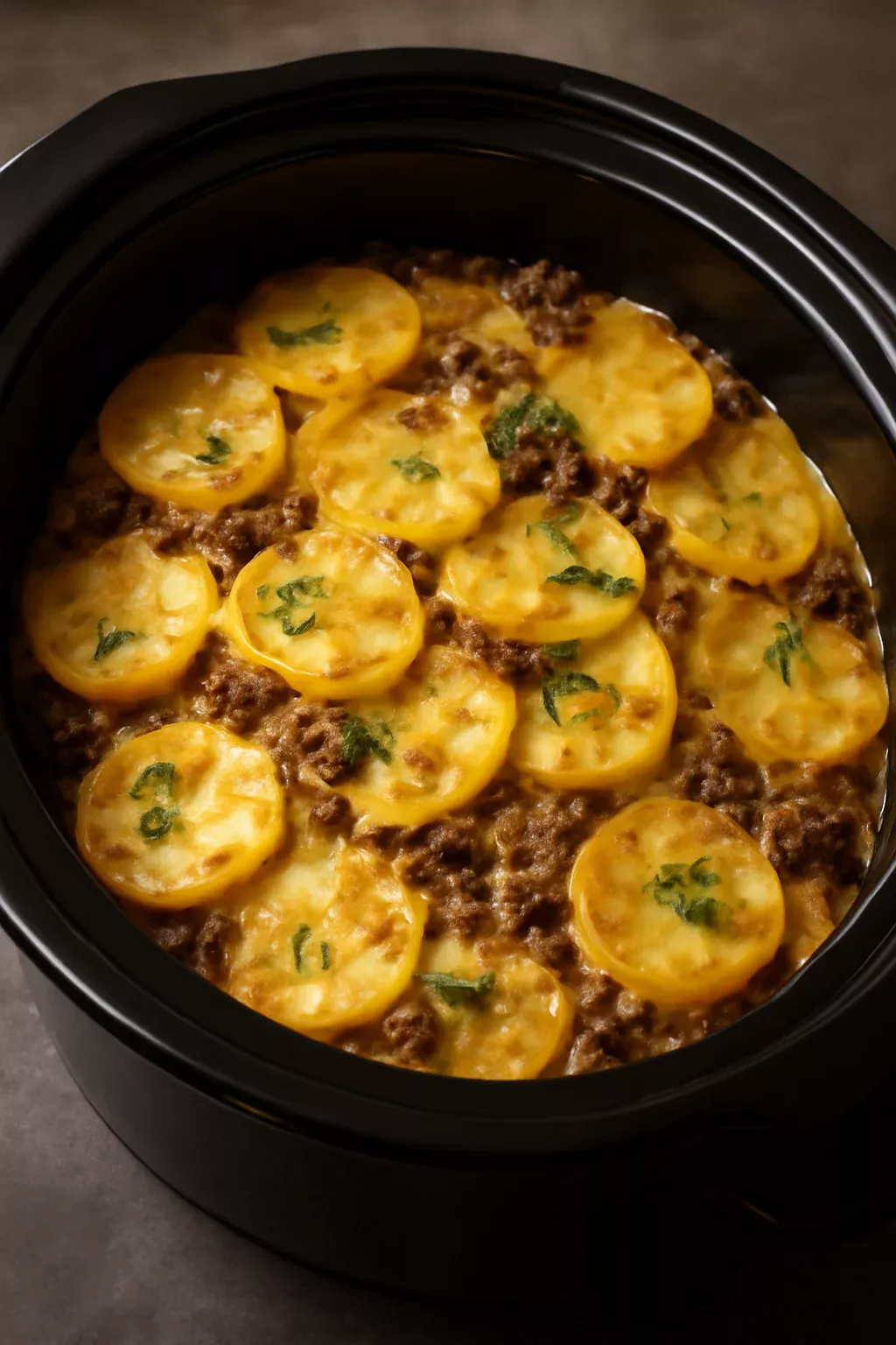 Slow Cooker Beef and Potato Au Gratin