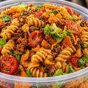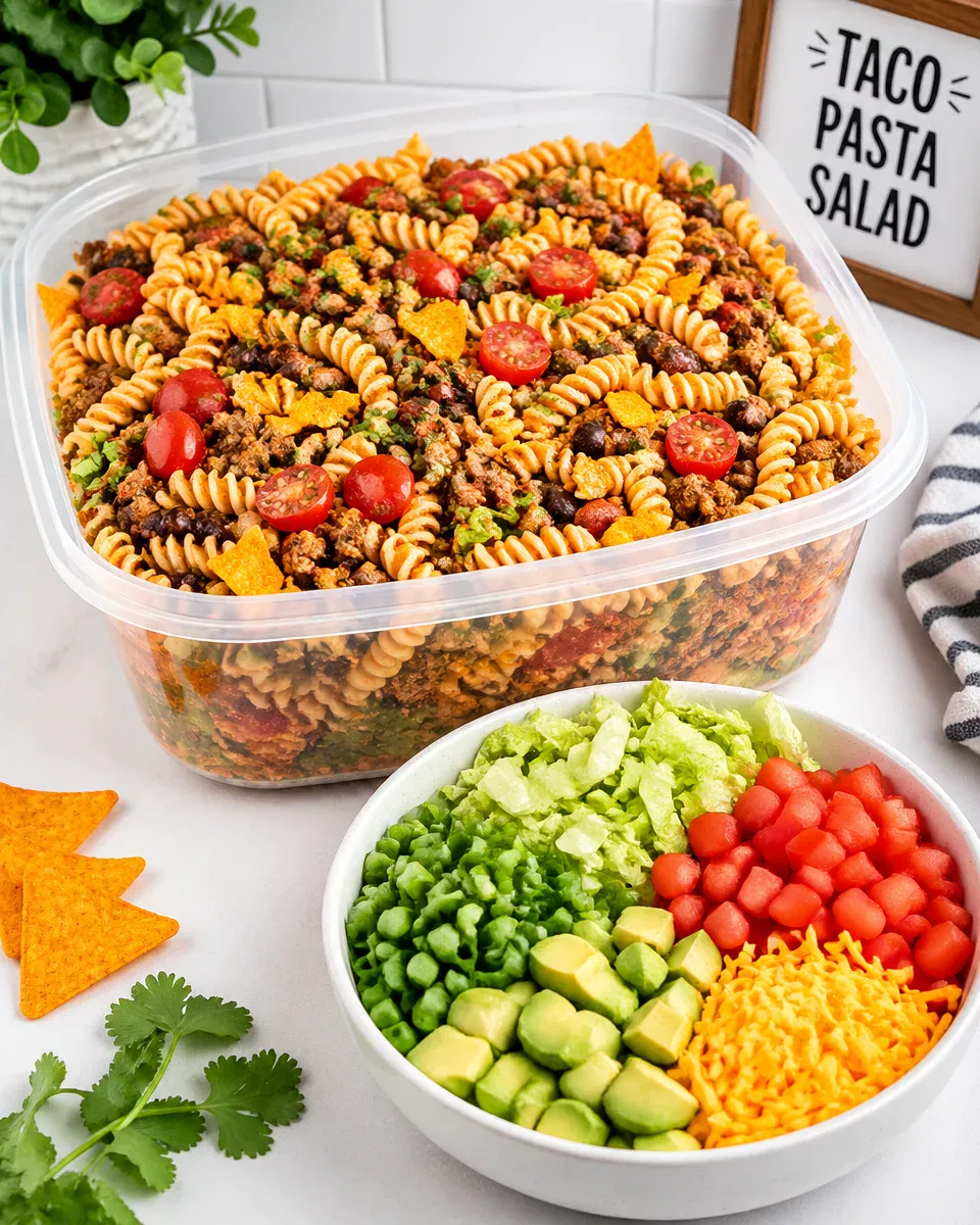 A flavorful and fun chilled pasta salad with taco-inspired ingredients that’s perfect for meals, potlucks, or quick lunches.
