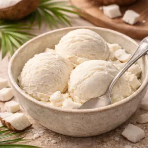 The biggest mistake people make with coconut ice cream is relying on extract alone. Coconut extract can be nice, but it can also taste like sunscreen if you go overboard. For Tender Coconut Ice Cream, the goal is simple: use the coconut itself as the main flavor, and let everything else support it.